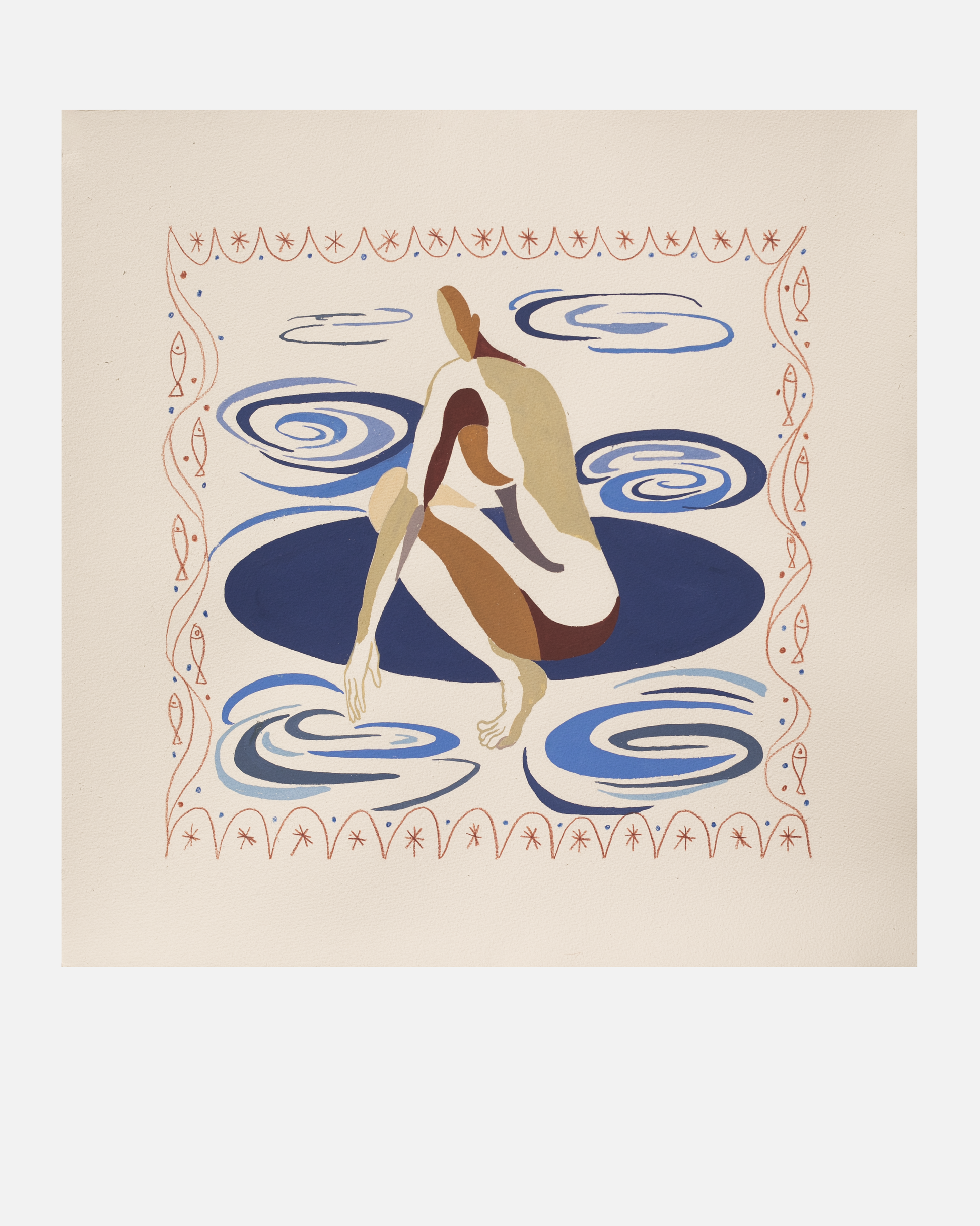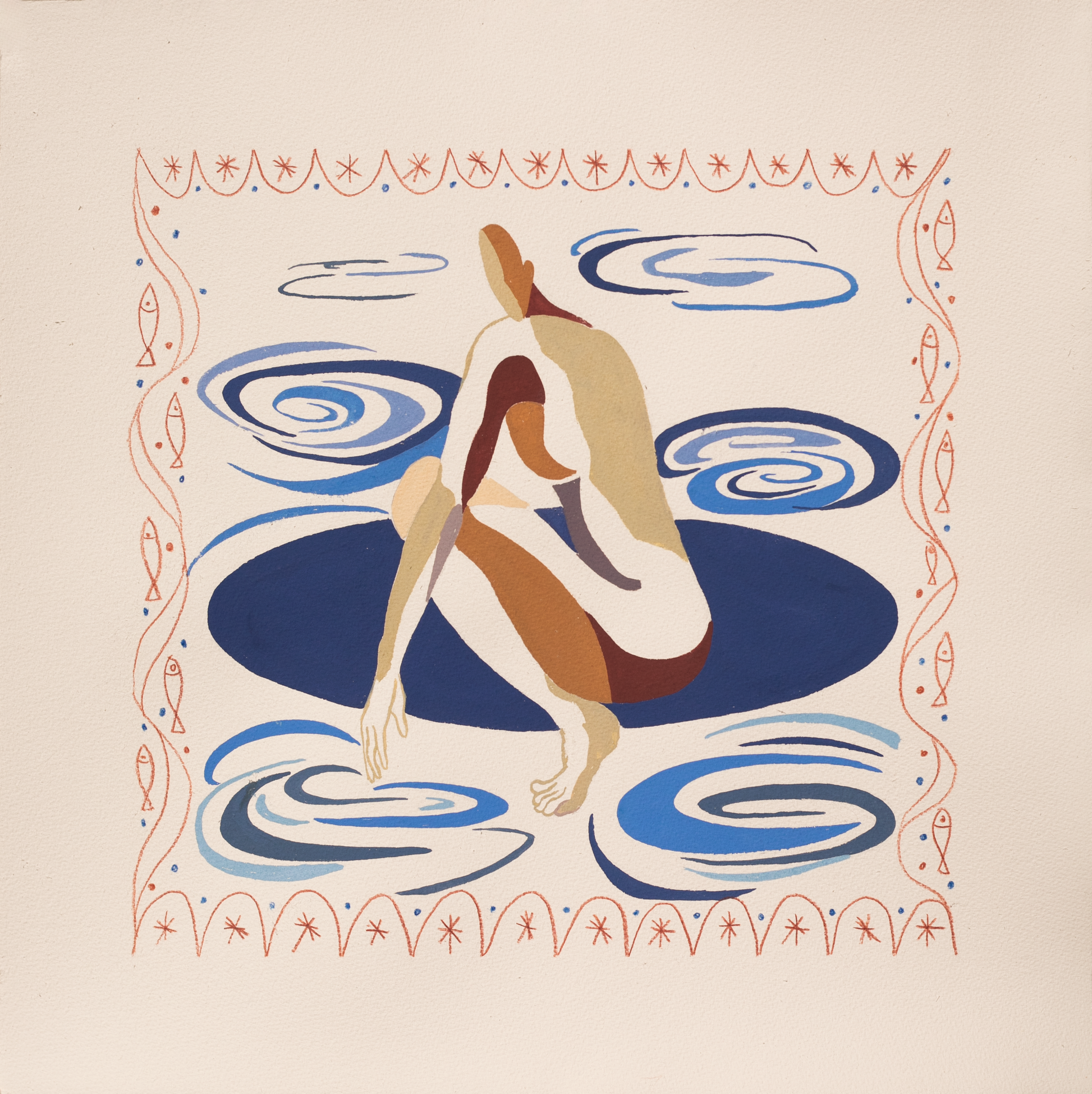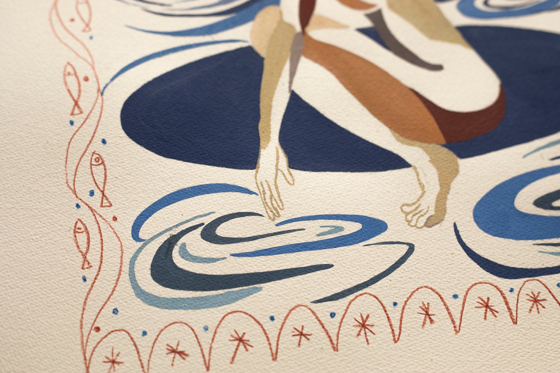 Technika: gwasz i kredki na bawełnianym papierze